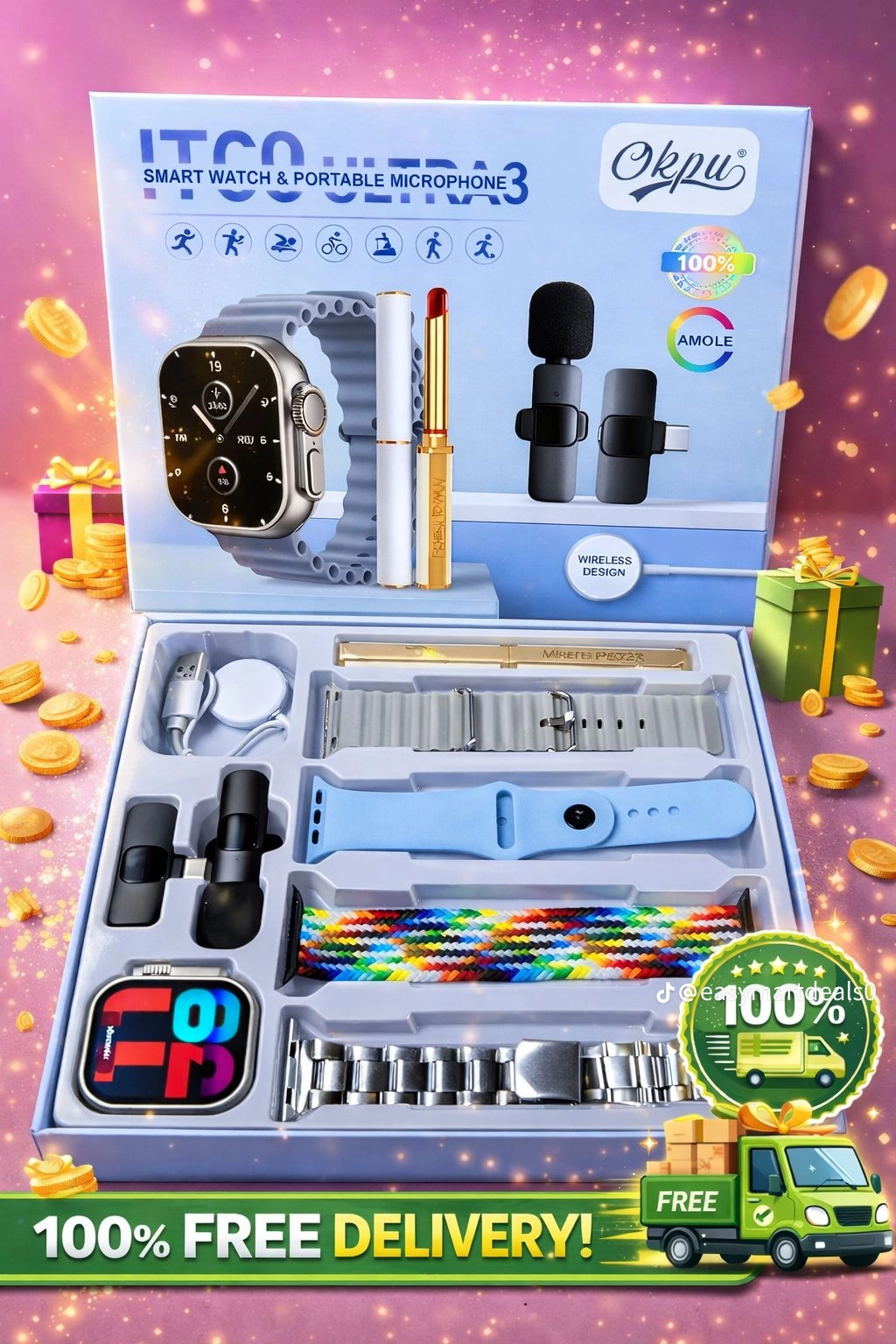A58 Plus Smartwatch and Jewelry Gift Set